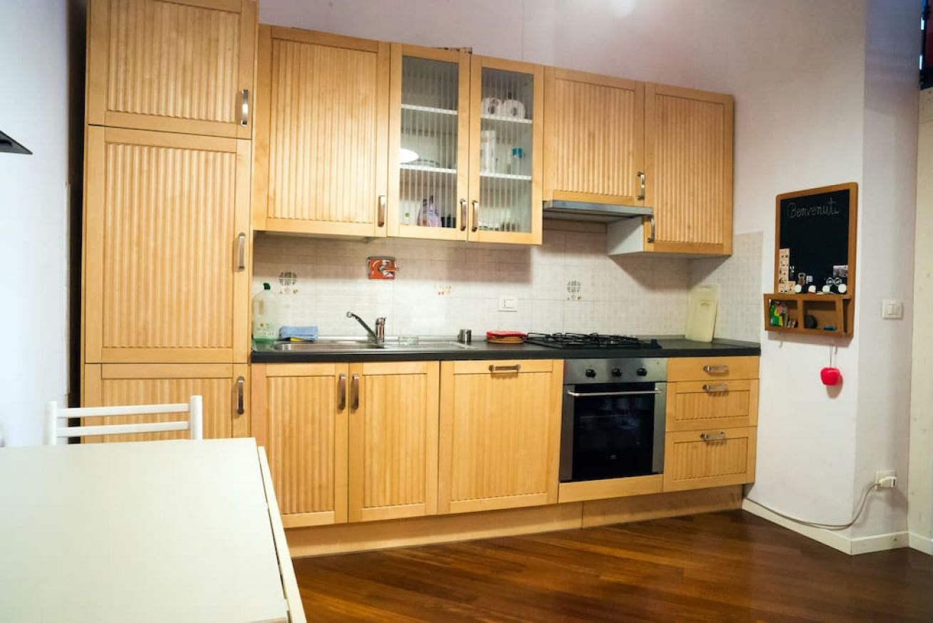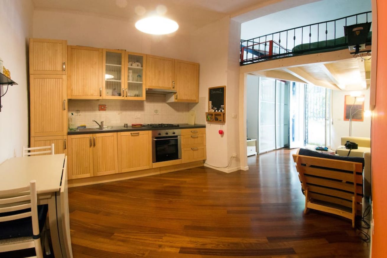 Trovereteun ampio salone con cucina attrezzata, una camera da letto matrimoniale e un bagno completo.
